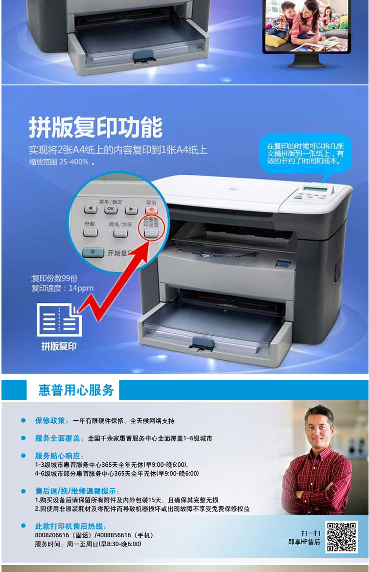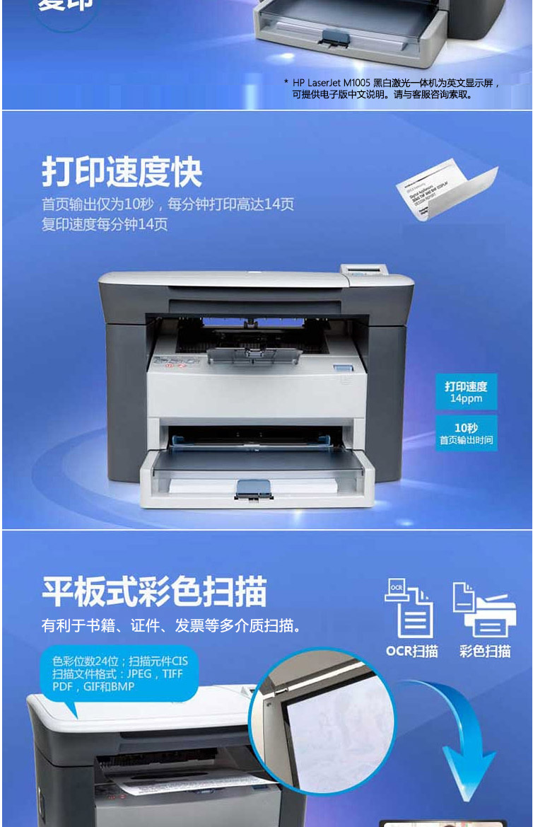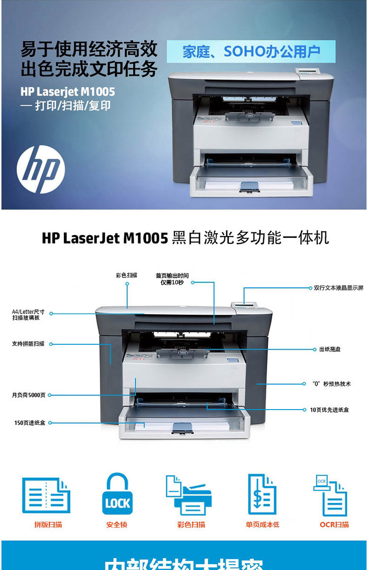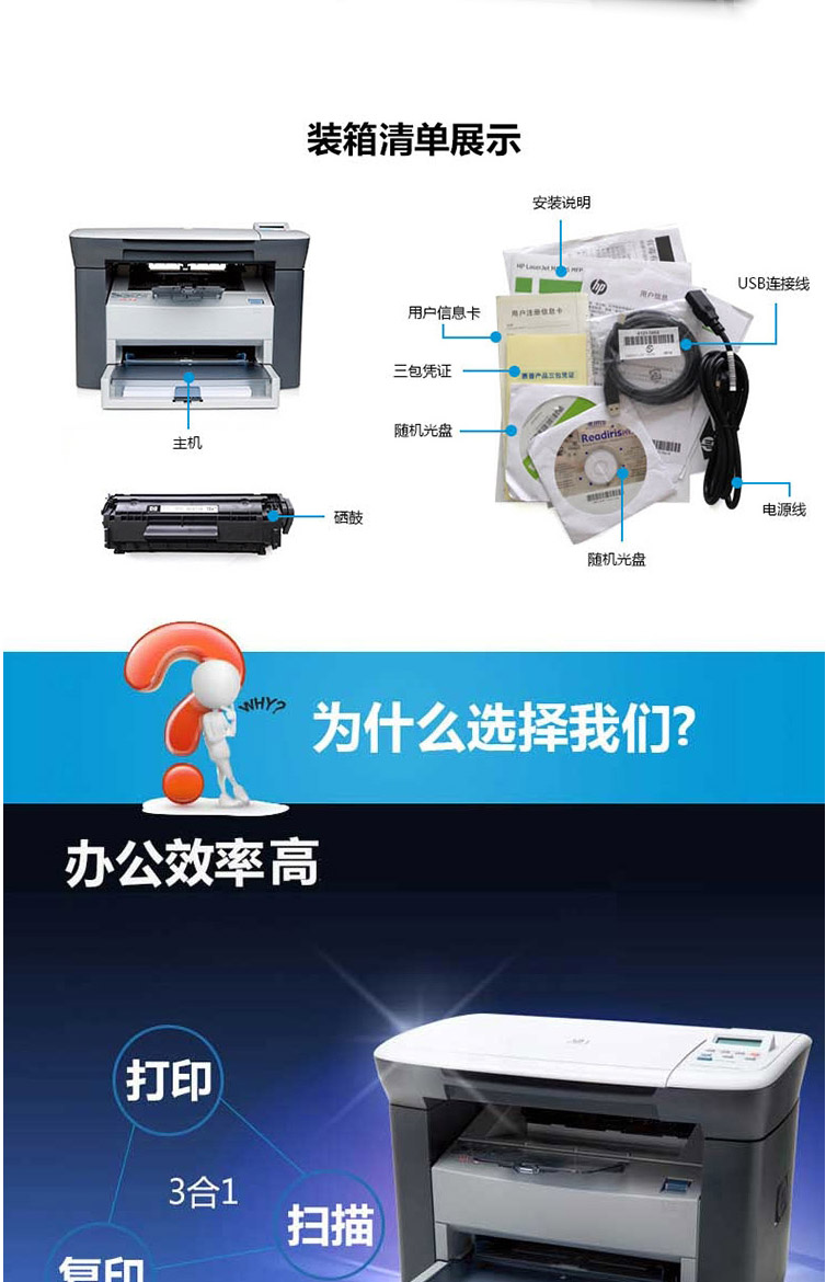惠普(HP) M1005 黑白激光打印機多功能一體機
